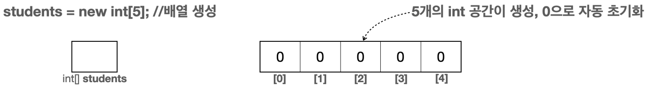 int[] students = x001; //2. new int[5]의 결과로 x001 참조값 반환