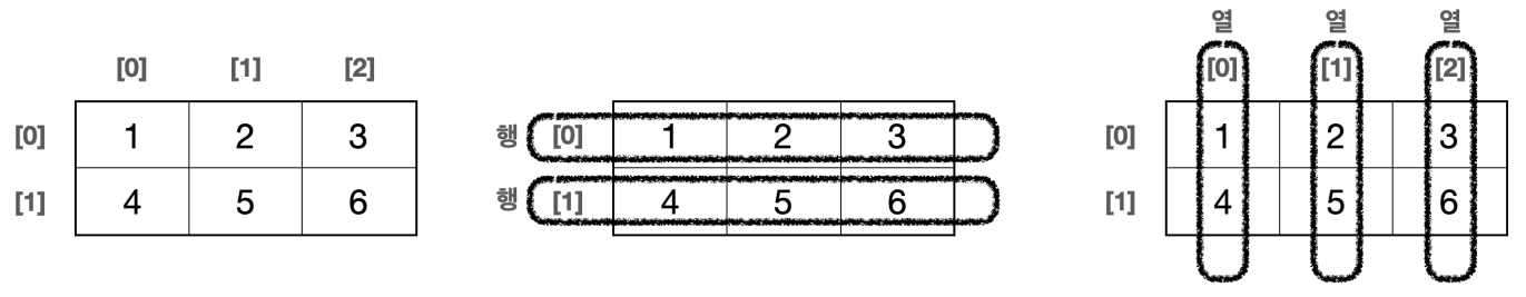 int[][] arr = new int[2][3]; // 행 : 2, 열 : 3