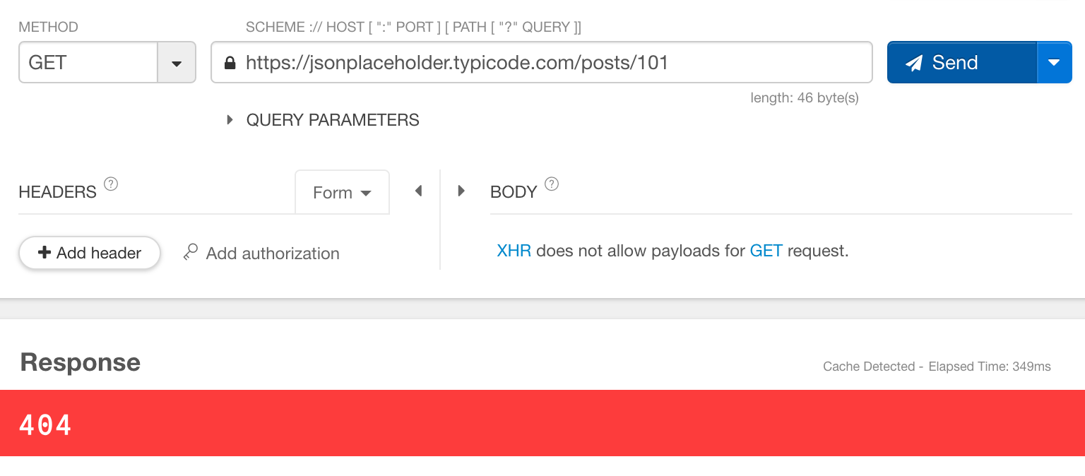 본문에는 메시지를 실어 보내는 실제 데이터가 있다. 앞서 /posts/101을 요청해서 404 에러가 발생했으므로 본문은 비어있다. ({}) 즉, 헤더가 편지 봉투였다면 본문은 편지 내용과 같다.
